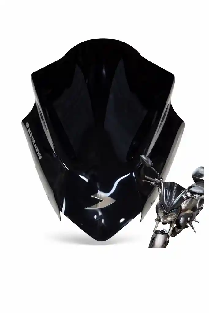 Material: Fabricada en policarbonato de alta resistencia. Detalles: Acabado ahumado/negro, diseño ergonómico y aerodinámico. Ajuste: Se instala en los puntos originales de la moto, sin necesidad de modificaciones estructurales. Reduce la fatiga y protege contra viento, polvo e insectos.