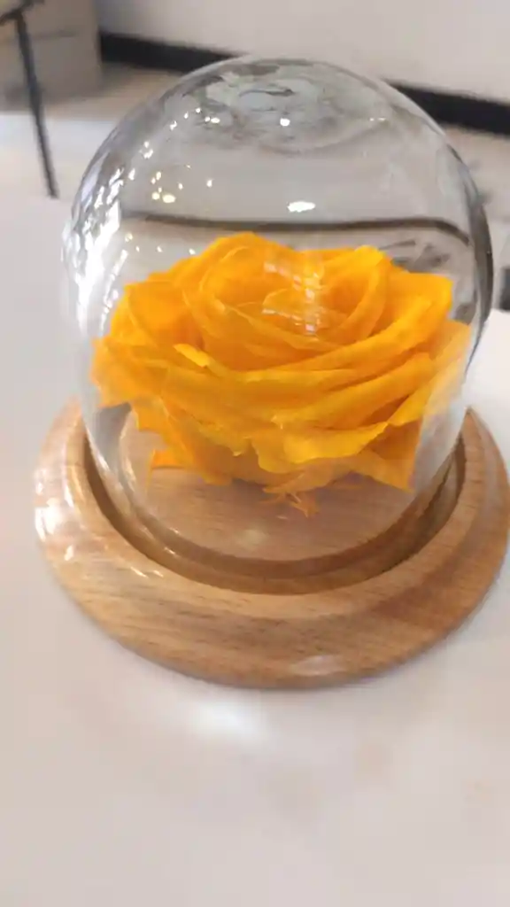 Dulce detalle de cabeza de rosa premium, dentro de cupula, pequeño e inspirador.