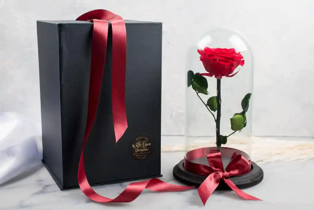 Cúpula con Rosa Premium con Caja de Lujo. La rosa es Inmortalizada de 1 a 5 años (Preservada)