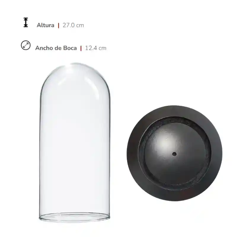 Urna de cristal con base en madera color negro T32. NO INCLUYE BASE. Perfecta para las rosas preservadas tamaño estándar o vírgenes. Puedes recoger en Envigado