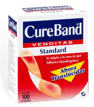 son vendajes autoadhesivos que se utilizan para tratar heridas menores: Cureband Standard Translúcidas Son vendajes autoadhesivos de color transparente que protegen las heridas sin alterar su apariencia. El adhesivo es suave y permiten que la piel respire.