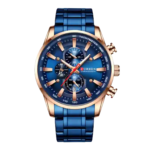 Reloj Curren Krec9703 Género Hombre Color Azul Material Acero Inoxidable Tono de Caja Oro Rosa Material de Caja Acero Inoxidable Color Tablero Azul/Oro Rosa Material Cristal Mineral Ancho de Banda 240 Largo de Banda 24 Resistencia al Agua 30 Tamaño de Caja 47 Tipo de Reloj Análogo Calendario Cronógrafo Forma de Reloj Circular Tipo de Movimiento Cuarzo Tipo de Cierre Desplegable
