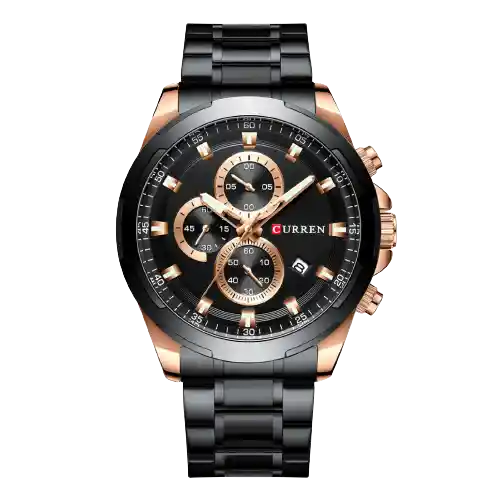 Reloj Curren Krec8401 Género Hombre Color Negro Material Acero Inoxidable Tono de Caja Oro Rosa Material de Caja Acero Inoxidable Color Tablero Negro Material Cristal Mineral Ancho de Banda 240 Largo de Banda 24 Resistencia al Agua 30 Tamaño de Caja 47 Tipo de Reloj Análogo Calendario Cronógrafo Forma de Reloj Circular Tipo de Movimiento Cuarzo Tipo de Cierre Desplegable