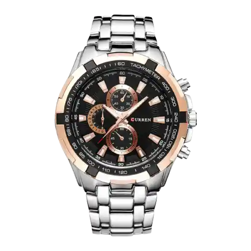 Reloj Curren Kre02192001 Género Hombre Color Plateado Material Aleación Tono de Caja Plateado Material de Caja Acero Inoxidable Color Tablero Negro/Dorado Material Cristal Mineral Ancho de Banda 225 Largo de Banda 20 Resistencia al Agua 100 Tamaño de Caja 45 Tipo de Reloj Análogo Calendario Cronógrafo Forma de Reloj Circular Tipo de Movimiento Cuarzo Tipo de Cierre Desplegable