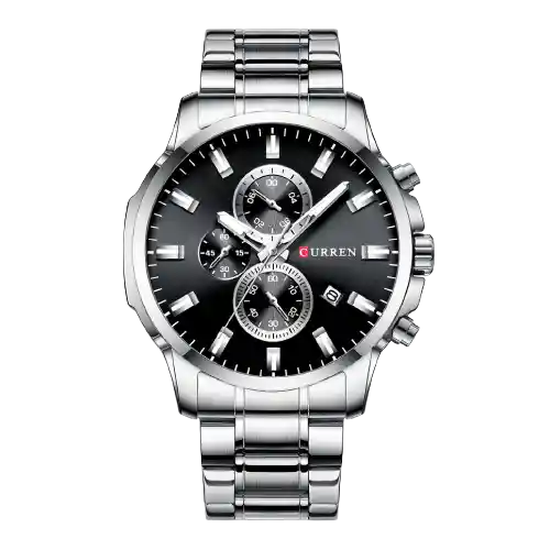 Reloj Curren Krec8119 Género Hombre Color Plateado Material Acero Inoxidable Tono de Caja Plateado Material de Caja Acero Inoxidable Color Tablero Negro Material Cristal Mineral Ancho de Banda 250 Largo de Banda 24 Resistencia al Agua 30 Tamaño de Caja 52 Tipo de Reloj Análogo Calendario Cronógrafo Forma de Reloj Circular Tipo de Movimiento Cuarzo Tipo de Cierre Desplegable