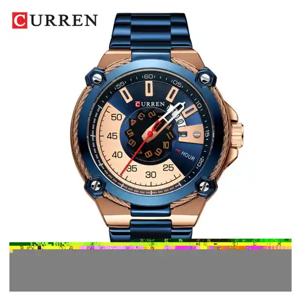 Reloj Curren 8345Blrg Hombre Color: Azul Material Acero Inoxidable Color Tablero: Multicolor Material Cristal: Mineral Tipo: Análogo Forma: Circular Tipo de Movimiento: Cuarzo Tipo de Cierre: Broche Calendario: Si Resistencia al Agua: 30 Ancho de Banda: Largo de Banda: 22 Tono de Caja Oro Rosa Material de Caja Aleación