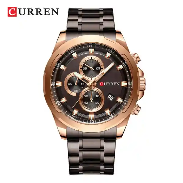 Reloj Curren 8354Gcf Hombre Color: Bronce Material Acero Inoxidable Color Tablero: Bronce Material Cristal: Mineral Tipo: Análogo Forma: Circular Tipo de Movimiento: Cuarzo Tipo de Cierre: Broche Calendario: Cronógrafo Resistencia al Agua: 30 Ancho de Banda: 24 cm Largo de Banda: 24 Tono de Caja Oro Rosa Material de Caja Aleación