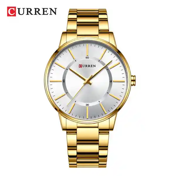 Reloj Curren 8385Gd Hombre Color: Dorado Material Acero Inoxidable Color Tablero: Plateado Material Cristal: Mineral Tipo: Análogo Forma: Circular Tipo de Movimiento: Cuarzo Tipo de Cierre: Desplegable Calendario: No Resistencia al Agua: 30 Ancho de Banda: 250 Largo de Banda: 24 Tono de Caja Dorado Material de Caja Acero Inoxidable