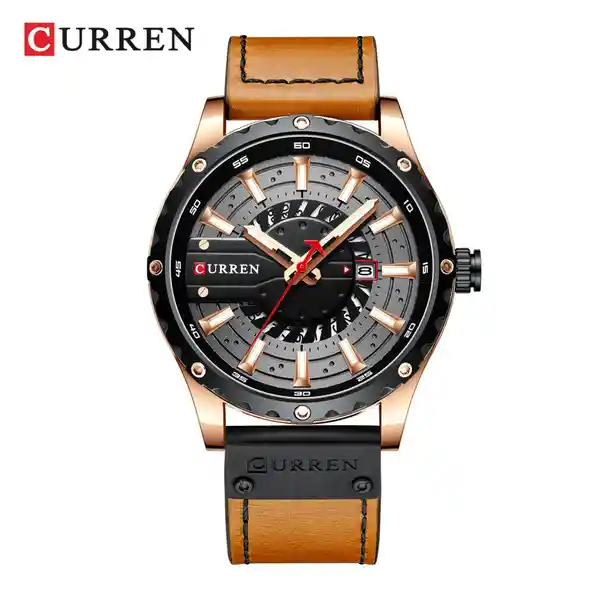 Reloj Curren 8374Bnbk Hombre Color: Dorado Material Cuero Color Tablero: Negro Material Cristal: Mineral Tipo: Análogo Forma: Circular Tipo de Movimiento: Cuarzo Tipo de Cierre: Broche Calendario: Si Resistencia al Agua: 30 Ancho de Banda: Largo de Banda: 20 Tono de Caja Oro Rosa Material de Caja Aleación