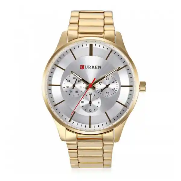 Reloj Curren 8282Grg Hombre Color: Dorado Material Acero Inoxidable Color Tablero: Plata Material Cristal: Mineral Tipo: Análogo Forma: Circular Tipo de Movimiento: Cuarzo Tipo de Cierre: Desplegable Calendario: Cronolook Resistencia al Agua: 30 Ancho de Banda: 220 Largo de Banda: 20 Tono de Caja Dorado Material de Caja Acero Inoxidable