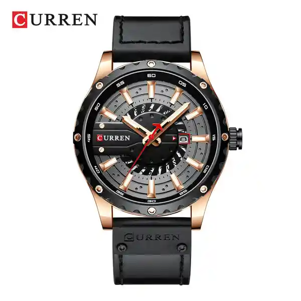 Reloj Curren 8374Bk Hombre Color: Negro Material Cuero Color Tablero: Negro Material Cristal: Mineral Tipo: Análogo Forma: Circular Tipo de Movimiento: Cuarzo Tipo de Cierre: Broche Calendario: Si Resistencia al Agua: 30 Ancho de Banda: Largo de Banda: 20 Tono de Caja Oro Rosa Material de Caja Aleación