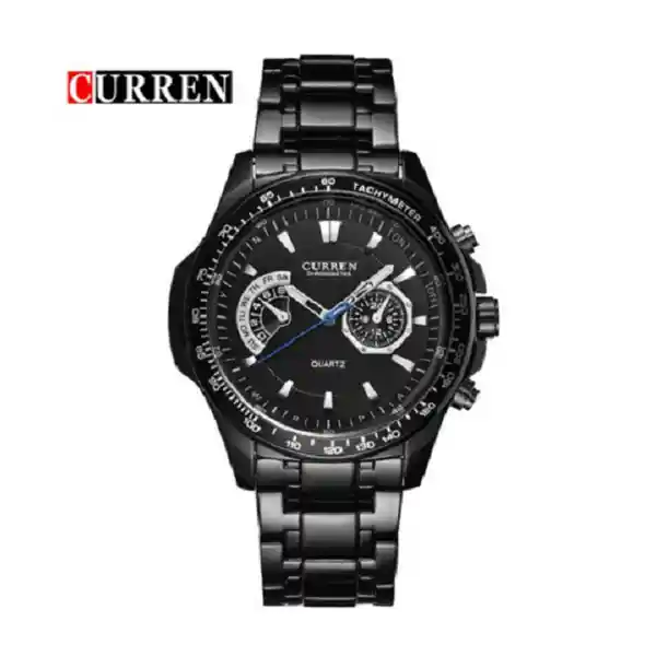 Reloj Curren 8020Bk Hombre Color: Negro Material Acero Inoxidable Color Tablero: Negro Material Cristal: Mineral Tipo: Análogo Forma: Circular Tipo de Movimiento: Cuarzo Tipo de Cierre: Desplegable Calendario: Cronolook Resistencia al Agua: 30 Ancho de Banda: 230 Largo de Banda: 22 Tono de Caja Negro Material de Caja Acero Inoxidable