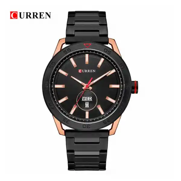 Reloj Curren 8331Bkrg Hombre Color: Negro Material Acero Inoxidable Color Tablero: Negro Material Cristal: Mineral Tipo: Análogo Forma: Circular Tipo de Movimiento: Cuarzo Tipo de Cierre: Broche Calendario: Si Resistencia al Agua: 30 Ancho de Banda: Largo de Banda: 24 Tono de Caja Oro Rosa Material de Caja Aleación