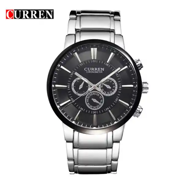 Reloj Curren 8001Abk Hombre Color: Plateado Material Acero Inoxidable Color Tablero: Negro Material Cristal: Mineral Tipo: Análogo Forma: Circular Tipo de Movimiento: Cuarzo Tipo de Cierre: Desplegable Calendario: Cronolook Resistencia al Agua: 30 Ancho de Banda: 260 Largo de Banda: 24 Tono de Caja Plateado Material de Caja Acero Inoxidable