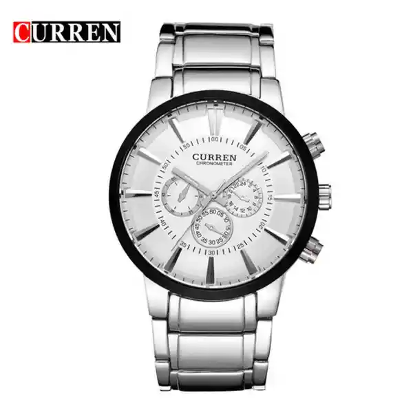 Reloj Curren 8001Asl Hombre Color: Plateado Material Acero Inoxidable Color Tablero: Blanco Material Cristal: Mineral Tipo: Análogo Forma: Circular Tipo de Movimiento: Cuarzo Tipo de Cierre: Desplegable Calendario: Cronolook Resistencia al Agua: 30 Ancho de Banda: 260 Largo de Banda: 24 Tono de Caja Plateado Material de Caja Acero Inoxidable