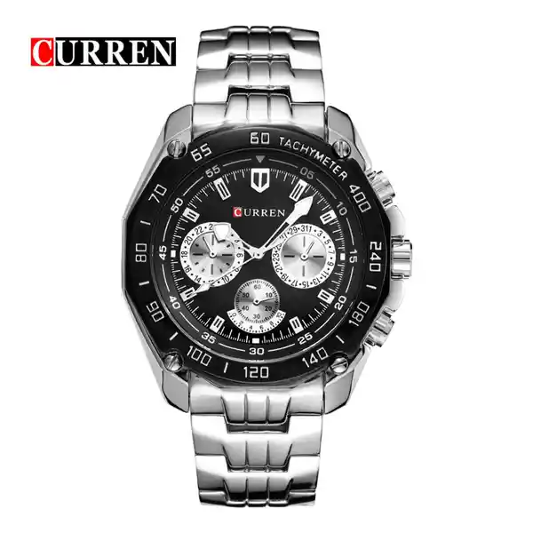 Reloj Curren 8077Slbk Hombre Color: Plateado Material Acero Inoxidable Color Tablero: Negro Material Cristal: Mineral Tipo: Análogo Forma: Circular Tipo de Movimiento: Cuarzo Tipo de Cierre: Desplegable Calendario: Cronolook Resistencia al Agua: 30 Ancho de Banda: 240 Largo de Banda: 21 Tono de Caja Plateado Material de Caja Acero Inoxidable
