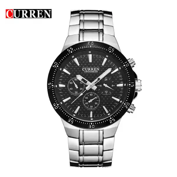 Reloj Curren 8063Slbk Hombre Color: Plateado Material Acero Inoxidable Color Tablero: Negro Material Cristal: Mineral Tipo: Análogo Forma: Circular Tipo de Movimiento: Cuarzo Tipo de Cierre: Desplegable Calendario: Cronolook Resistencia al Agua: 30 Ancho de Banda: 210 Largo de Banda: 22 Tono de Caja Plateado Material de Caja Acero Inoxidable