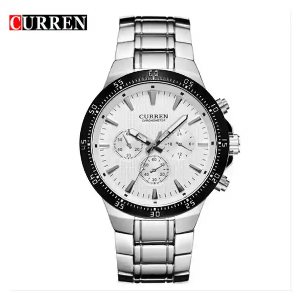 Reloj Curren 8063Sl Hombre Color: Plateado Material Acero Inoxidable Color Tablero: Blanco Material Cristal: Mineral Tipo: Análogo Forma: Circular Tipo de Movimiento: Cuarzo Tipo de Cierre: Desplegable Calendario: Cronolook Resistencia al Agua: 30 Ancho de Banda: 210 Largo de Banda: 22 Tono de Caja Plateado Material de Caja Acero Inoxidable