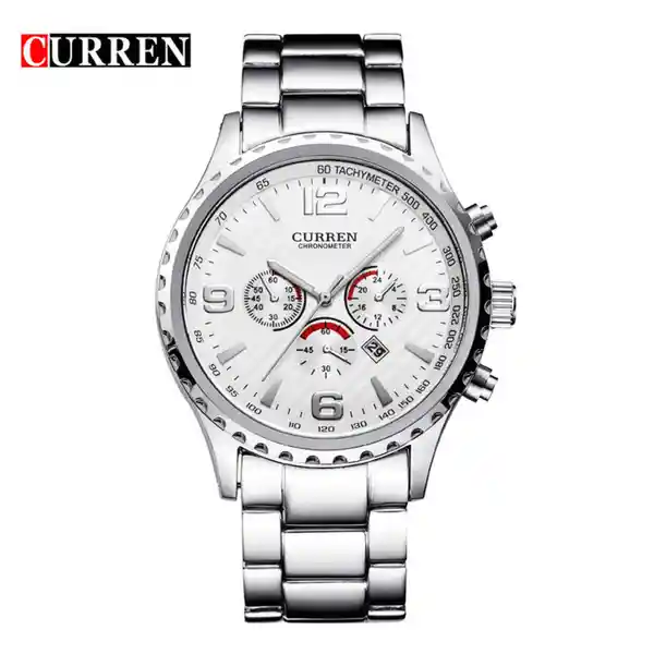 Reloj Curren 8056Sl Hombre Color: Plateado Material Acero Inoxidable Color Tablero: Blanco Material Cristal: Mineral Tipo: Análogo Forma: Circular Tipo de Movimiento: Cuarzo Tipo de Cierre: Desplegable Calendario: Cronolook Resistencia al Agua: 30 Ancho de Banda: 210 Largo de Banda: 22 Tono de Caja Plateado Material de Caja Acero Inoxidable
