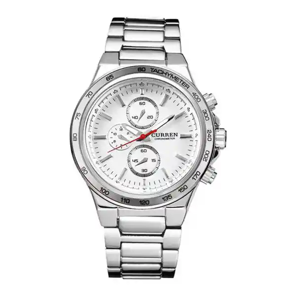 Reloj Curren 8011Sl Hombre Color: Plateado Material Acero Inoxidable Color Tablero: Blanco Material Cristal: Mineral Tipo: Análogo Forma: Circular Tipo de Movimiento: Cuarzo Tipo de Cierre: Desplegable Calendario: Cronolook Resistencia al Agua: 30 Ancho de Banda: 220 Largo de Banda: 22 Tono de Caja Plateado Material de Caja Acero Inoxidable