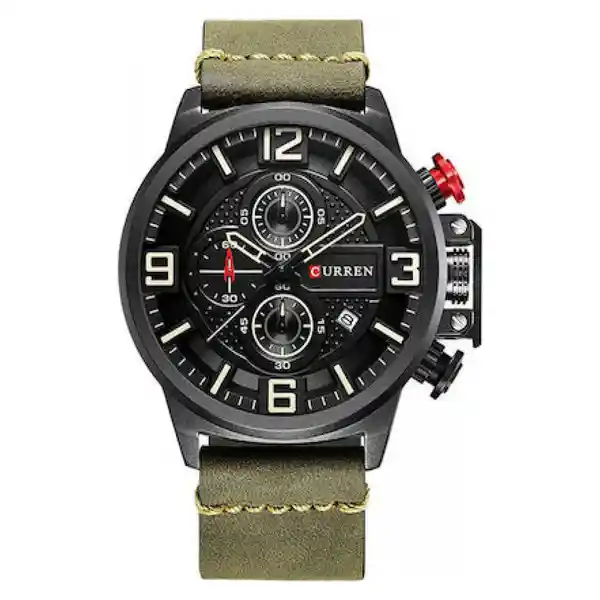 Reloj Curren 8278Gn Hombre Color: Verde Material Cuero Color Tablero: Negro Material Cristal: Mineral Tipo: Análogo Forma: Circular Tipo de Movimiento: Cuarzo Tipo de Cierre: Hebilla Calendario: Cronógrafo Resistencia al Agua: 30 Ancho de Banda: Largo de Banda: Tono de Caja Negro Material de Caja Aleación