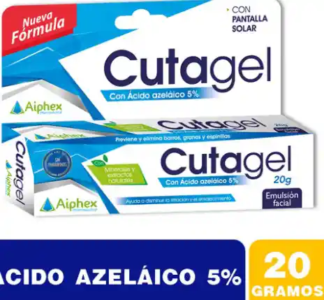 LA EMULSION FACIAL CUTAGEL COMBINA LA ACCION DEL ACIDO AZELAICO, CON EXTRACTOS NATURALES Y MINERALES PARA CORREGIR LAS IMPERFECCIOES DE LA PIEL QUE CAUSAN LOS BARROS Y ESPINILLAS, SUAVIZANDO Y MEJORANDO SU ASPECTO Y APARIENCIA.