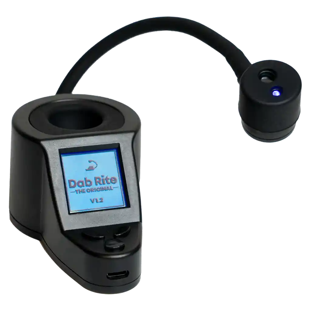 Dab Rite es el termómetro digital IR más avanzado del mercado que está diseñado específicamente para los conocedores y personas que buscan medir el valor de calor del cuarzo Cada unidad V1. 0 está preinstalada con ajustes de emisividad para cuarzo y cuarzo opaco. UN DAB EN LA TEMPERATURA CORRECTA