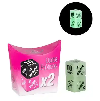 Vuelve a revivir la pasión de pareja con estos hermosos y lujosos dados para jugar seductoramente con tu pareja, uno de ellos tiene la parte del cuerpo mientras el otro relaciona diferentes acciones. Son perfectos para una noche divertida y llena de clímax por doquier. Adicional se cargan con la luz del sol para que la oscuridad no aplaque, sino que aumente la pasión.