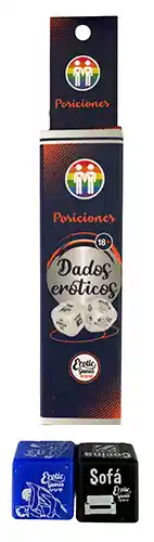 DADOS ERÓTICOS PARA TODO TIPO DE PAREJA Dados Posiciones y/o Penitencias, Deja que la suerte decida la postura que vas a practicar esta noche y salga lo que salga haz caso a los dados. Se trata de un accesorio muy popular entre los juegos eróticos en pareja. En algunos casos las caras del dado solo especifican la postura que debes practicar, en otros son acciones como besar, lamer o tocar, y partes del cuerpo donde debes realizarlas. ¡Déjate llevar!
