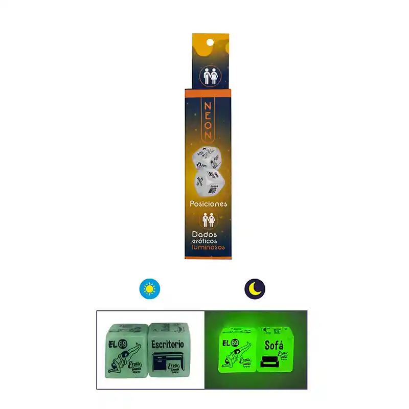Deja que la suerte decida la postura que vas a practicar esta noche y salga lo que salga haz caso a los dados. Se trata de un accesorio muy popular entre los juegos eróticos en pareja. En algunos casos las caras del dado solo especifican la postura que debes practicar, en otros son acciones como besar, lamer o tocar, y partes del cuerpo donde debes realizarlas. Dejate llevar ! …