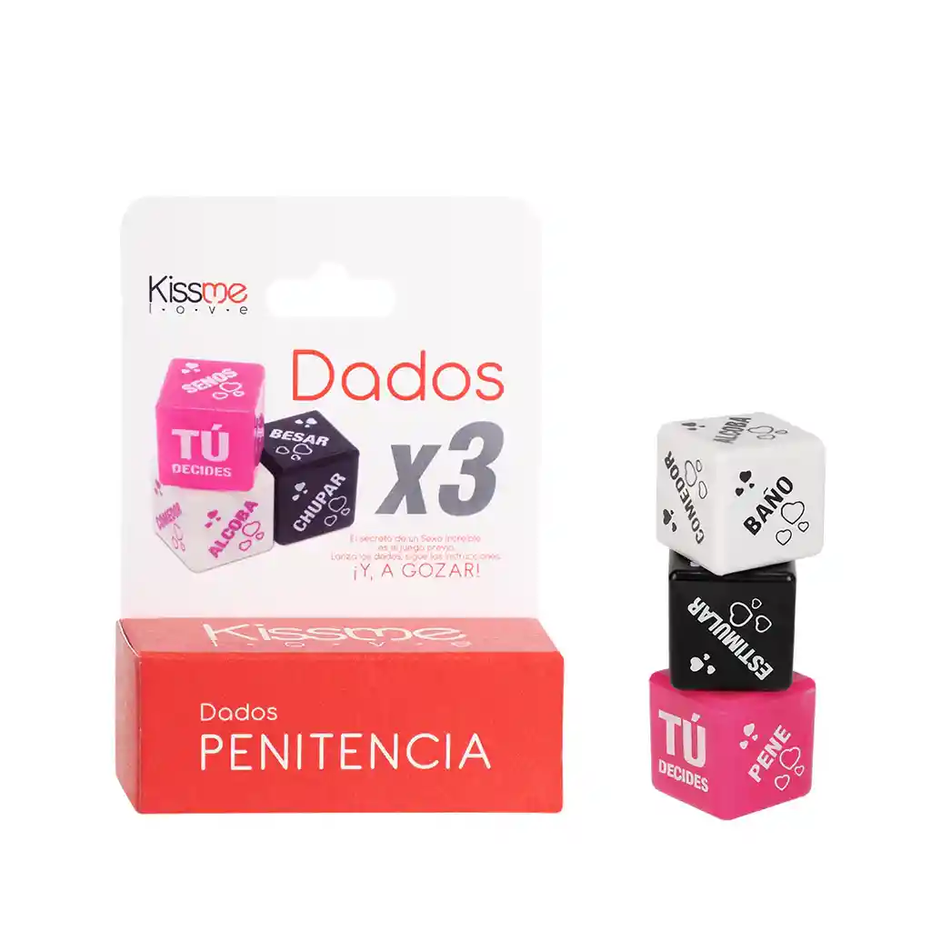 Juego erótico para disfrutar en pareja o aún mejor, en grupo. Te dirá: ¿Qué hacer? ¿Cómo hacerlo? ¿En qué parte del cuerpo? Una dinámica divertida para pasarla bien. Color: Negro, rosado, blanco Incluye: 3 dados Él envió de los productos se realiza de manera discreta en un empaque totalmente sellado donde no se ven su interior y sin marcas externas conservado la privacidad de nuestros clientes.