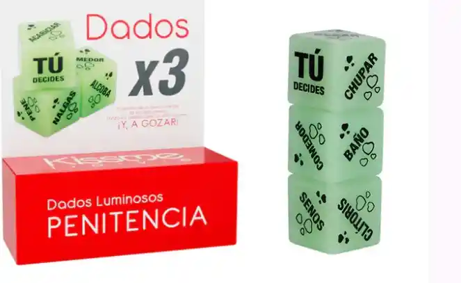 Un poco de juego previo es lo mejor para comenzar una gran noche de pasión. Simplemente lanza los dados y deja que ellos te digan ¿Qué hacer? ¿Cómo hacerlo? Y ¿Dónde hacerlo? Vivirás una experiencia totalmente única, placentera y excitante. Características: • 2 dados luminosos • Brillan en la oscuridad • Indica posiciones Confidencialidad: Somos 100% discretos, tu envío llegará en una caja negra completamente envuelta. No lo pienses más y disfruta de grandes momentos.