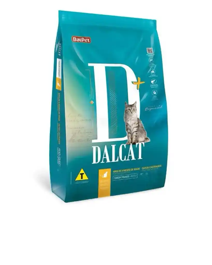 Dalpet- Alimento Premium Especial. Dalcat gatos Castrados. Más fibra y menos grasa para evitar la obesidad, sin colorantes, sin sabores artificiales, formulado con ingredientes que proporcionan un equilibrio nutricional y armonioso para satisfacer las necesidades proteínicas, vitamínicas, energéticas y minerales de los gatos. contiene probióticos que mejoran la salud intestinal del gato, semilla de linaza la cual es fuente de omega 3 y omega 6 para piel y pelaje sanos, hexametafosfáto de sodio el cual genera factor anti-sarro , minerales equilibrados que ayudan en el control del PH urinario, contiene taurina el cual es un aminoácido esencial para el corazón y visión, fibras especiales las cuales ayudan eliminar las bolas de pelo. INGREDIENTES: Harina de vísceras de pollo, arroz partido, maíz integral molido*, aceite de pollo, glúten de maíz 60*, aceite de pescado, harina de pescado, extracto de levadura de cerveza, huevo en polvo, salvado de trigo, salvado de arroz aceitoso, hidrolizado de hígado de pollo y cerdo, celulosa en polvo, fibra de guisante, pulpa de remolacha, taurina, DL-metionina, L-lisina, L-carnitina, prebiótico (MOS), extracto de yuca, probiótico (Bacillus subtilis y Bacillus cereus), cloruro de sodio (sal común), semilla de linaza(mín 1%), psyllium, zinc aminoácido quelatado, selenio aminoácido quelatado, manganeso aminoácido quelatado, aditivo fungicida (propionato de calcio), aditivo antioxidante (BHT/BHA), zeolita, hexametafosfato, premezcla de vitaminas mineral y cloruro de colina.