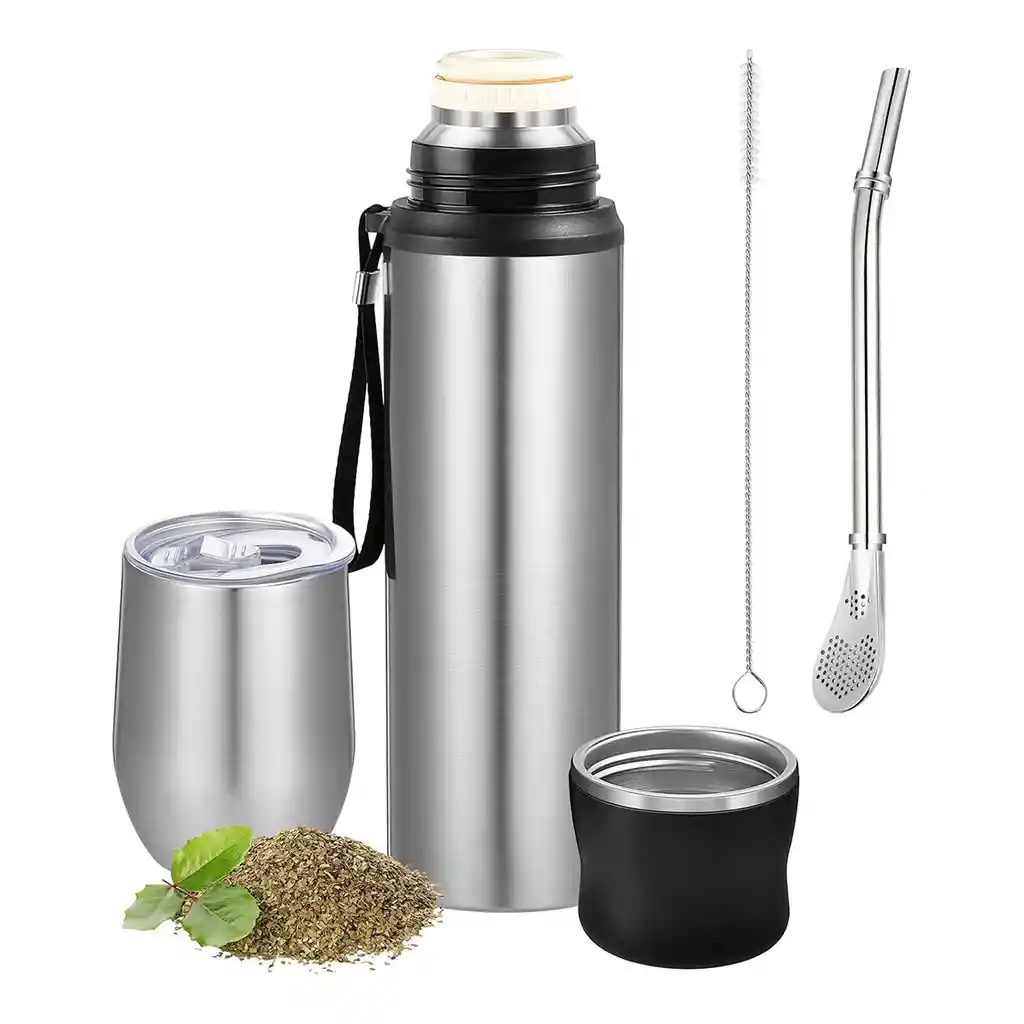 El Dandat Kit de Yerba Mate 4 Piezas Color Acero combina elegancia, durabilidad y bienestar en un diseño moderno y funcional. Incluye una calabaza de 355 ml, bombilla, cepillo limpiador y botella térmica de 1 litro (34 oz) con aislamiento de doble pared que mantiene la temperatura ideal de la infusión por horas. Fabricado en acero inoxidable resistente, conserva el sabor puro y las propiedades antioxidantes y energizantes de la yerba mate. Perfecto para quienes buscan un estilo de vida saludable, práctico y lleno de energía natural cada día.