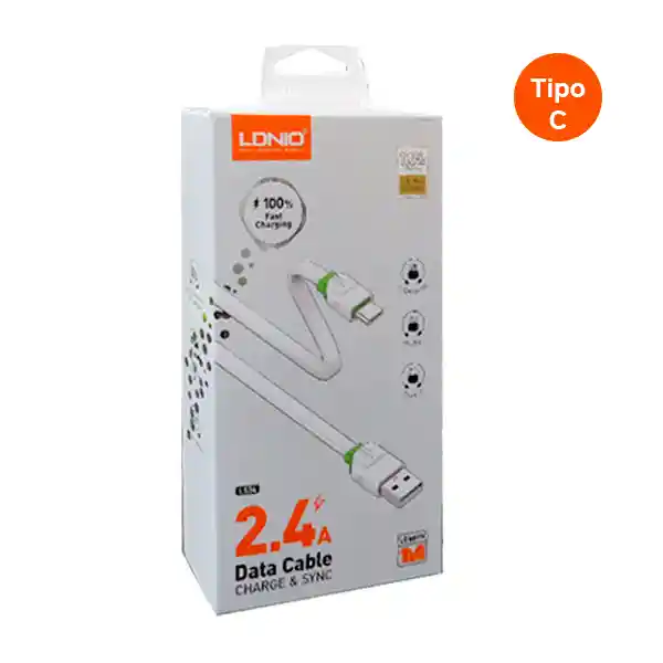 Cable plano encauchetado 2.4A USB, 1 metro, Tipo C, alta velocidad, material de plástico ecológico.