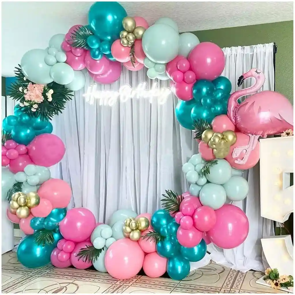 *********************GLOBOS Y PELUCHES MASMELO********************* Te damos toda la asesoria para que tú puedas armar tu propio arco 10 Globo verde 13 cm 20 Globo verde 30 cm 20 Globo rosado 30 cm 20 Globo fucsia 30 cm 10 Globo fucsia 13 cm 10 Globo cromado dorado 13 cm 10 Globo verde cromado 13 cm 25 Globo verde cromado 30 cm 1 Globo flamingo rosado 80x 93 cm Accesorios: -Punto de pegamento: 1 rollo -Cinta de cadena: 1 rollo *Los globos se entregan desinflados, tu compra no incluye el montaje ni la decoración, el servicio de armado no lo tenemos disponible. sin embargo te damos todas las instrucciones para hacer de modo profesional. Si deseas adicionar otros articulos a tu compra puedes escribirnos, recuerda que Somos Globos y Peluches Masmelo ;) - En ciudades fuera de Bogotá despachamos para el mismo día si compras antes de las 11AM (no incluye festivos) - En Bogotá despachamos para el mismo día, si haces el pedido antes de las 4PM (no incluye festivos)