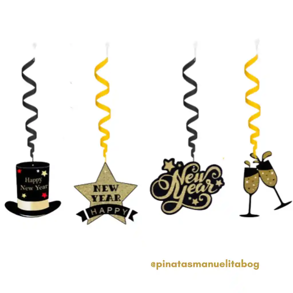 Paquete de espirales en cartón con diferentes diseños y estampados de happy new year x 9 und, ideal para decorar cualquier espacio. Feliz año, año nuevo, decoración feliz año, decoración año nuevo, 31 de diciembre, 1 de enero, fin de año, feliz 2026.