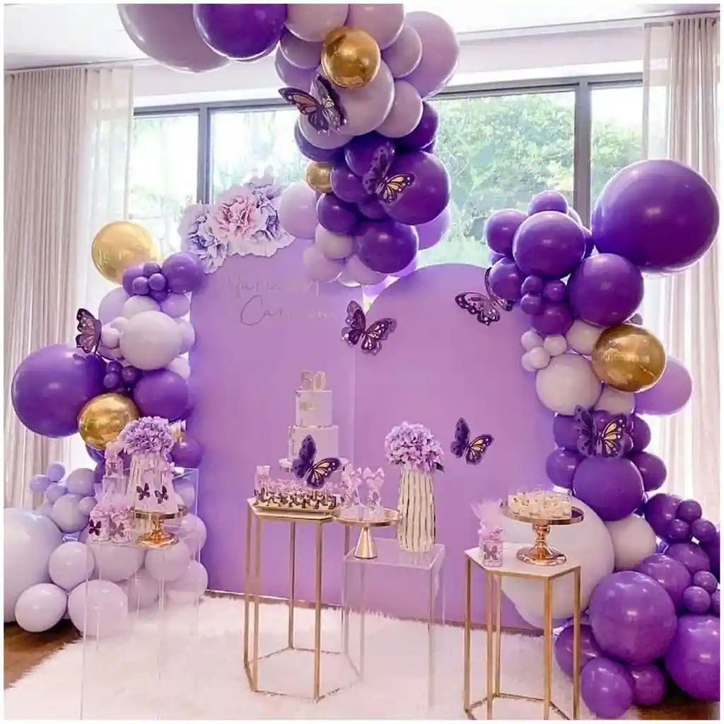 *********************GLOBOS Y PELUCHES MASMELO********************* Te damos toda la asesoria para que tú puedas armar tu propio arco 30 Globo morado 30 cm 2 Globo morado gigante 45 cm 30 Globo azul celeste 30 cm 2 Globo azul celeste gigante 45 cm 5 Globo morado cromado 30 cm 5 Globo cromado dorado 13 cm 20 Globo morado liso 13 cm 20 Globo azul celeste 13 cm Accesorios: -Punto de pegamento: 1 rollo -Cinta de cadena: 1 rollo *Los globos se entregan desinflados, tu compra no incluye el montaje ni la decoración, el servicio de armado no lo tenemos disponible. sin embargo te damos todas las instrucciones para hacer de modo profesional. Si deseas adicionar otros articulos a tu compra puedes escribirnos, recuerda que Somos Globos y Peluches Masmelo ;) - En ciudades fuera de Bogotá despachamos para el mismo día si compras antes de las 11AM (no incluye festivos) - En Bogotá despachamos para el mismo día, si haces el pedido antes de las 4PM (no incluye festivos)