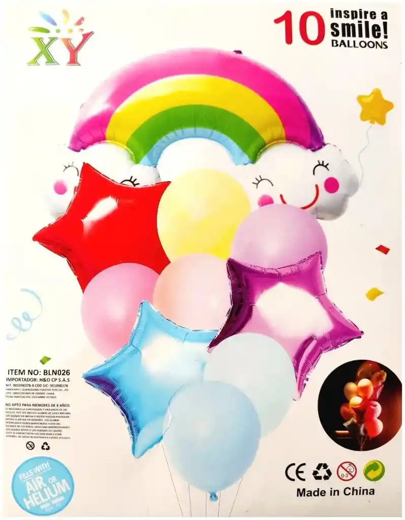 *********************GLOBOS Y PELUCHES MASMELO********************* Por tu compra te llevas: 1 Globo arcoiris 60x45cm 1 Globo estrella roja 45x45cm 1 Globo estrella azul 45x45cm 1 Globo estrella fucsia 45x45cm 6 Globo latex *Los globos se entregan desinflados, tu compra no incluye el montaje ni la decoración, el servicio de armado no lo tenemos disponible. sin embargo te damos todas las instrucciones para hacer de modo profesional. Si deseas adicionar otros articulos a tu compra puedes escribirnos, recuerda que Somos Globos y Peluches Masmelo ;) - En ciudades fuera de Bogotá despachamos para el mismo día si compras antes de las 11AM (no incluye festivos) - En Bogotá despachamos para el mismo día, si haces el pedido antes de las 4PM (no incluye festivos)
