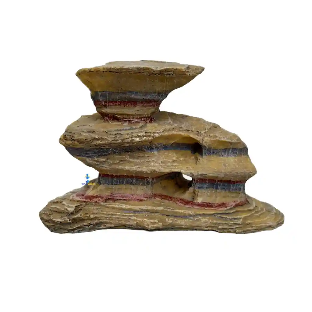 Decoración para acuarios Diseño moderno que trata de imitar espacios o condiciones realistas de la naturaleza, imita un caída rocosa Medidas: Alto: 9 cm Ancho: 7 cm Largo: 15 cm Producto fabricado especialmente para uso en acuarios, tanto de agua dulce como salada, por lo que NO es tóxico para los peces.