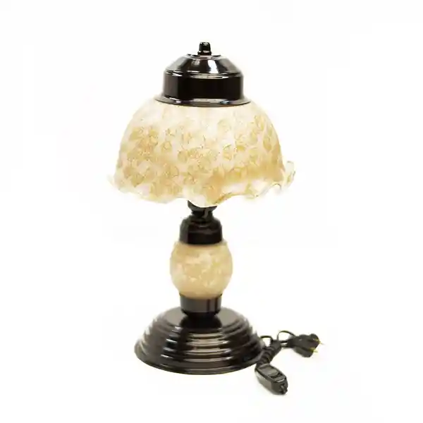 Fabricado en Metal y Vidrio Brisero de Vidrio Veteado (Caperuza) Cable de 1 Metro Con Interruptor de Encendido no Incluye Bombillo E27 Máximo 60 Watt Tipo de Rosca E27 (Tradicional) Material: Metal Tamaño cm: (Largo x Ancho x Alto) 22 x 22 x 38 cm.