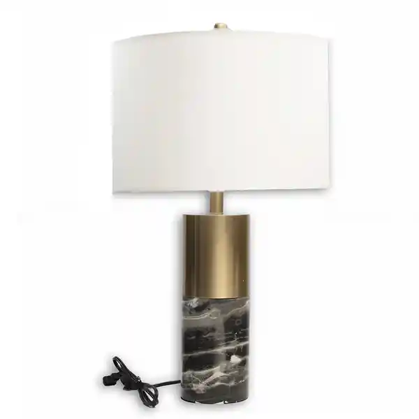 Tipo de Rosca E27 (Tradicional) Voltaje de Energía 110/220v Cable de 1 Metro Con Interruptor de Encendido Caperuza de Tela Tipo Araña Para Arpano Incluye Bombillo E27 Máximo Hasta 60 Watt Base en Piedra Natural Tipo Mármol y Metal Dorado Material: Mármol Tamaño cm: (Largo x Ancho x Alto) 38 x 38 x 62 cm.