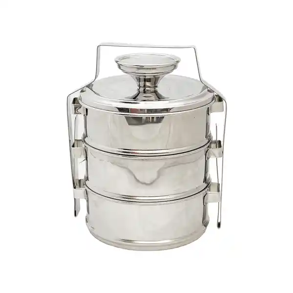 Contiene 3 Unidades. Fabricado en Acero Inoxidable Incluye 3 Recipientes Diámetro 15 cm x 6 cm de Alto Material: Acero Inoxidable Tamaño cm: ( Largo x Ancho x Alto) 18 x 18 x 24