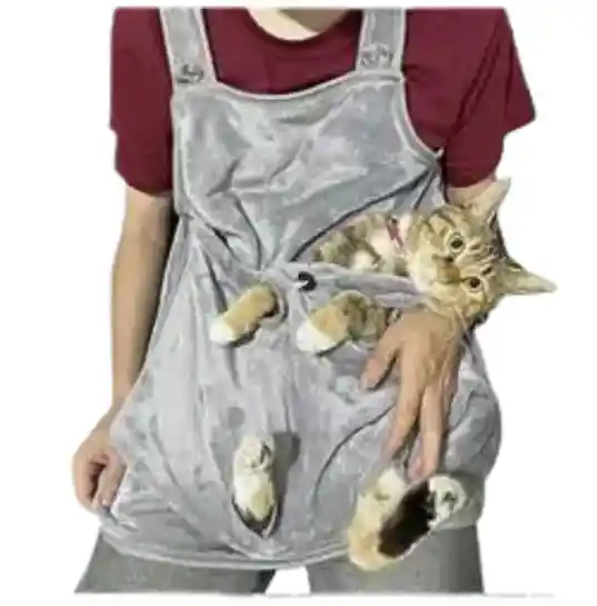 El delantal para aseo de gatos facilita el baño, cepillado y cuidado de tu mascota al permitir sujetarla cómodamente mientras realizas el proceso. Su bolsillo frontal tipo canguro mantiene al gato seguro y reduce el estrés durante el aseo. Ideal para uso doméstico o profesional, ayuda a proteger tu ropa mientras mejora el control y comodidad durante el grooming