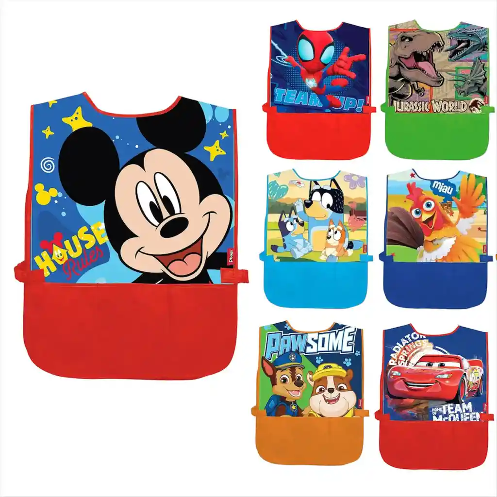 🎨 Delantal Infantil Escolar para niña marca Primavera con hermosos diseños de personajes impresos por transferencia Térmica., Talla Única, 🎨 Delantal sin mangas, Cinta de velcro, 3 bolsillos. Diseño surtido. Se envía según disponibilidad.