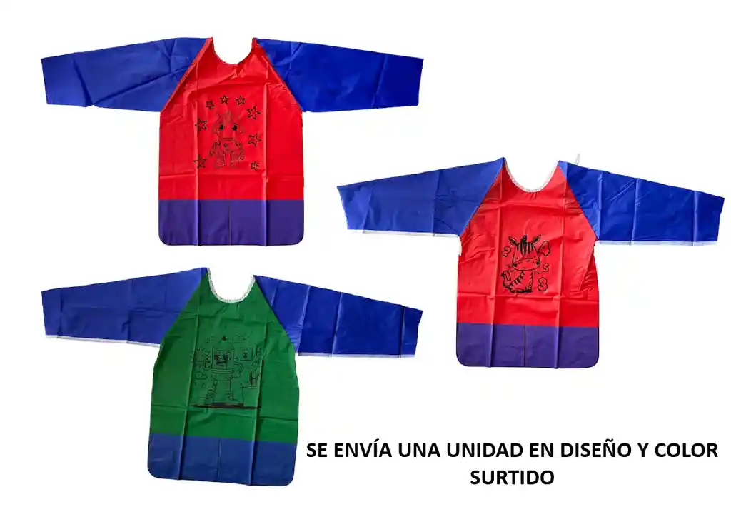 Delantal para niño con hermosos diseño, delantal con mangas, apertura en la espalda, 2 bolsillos. Talla M. SE ENVÍA UNA UNIDAD EN COLOR Y DISEÑO SURTIDO.