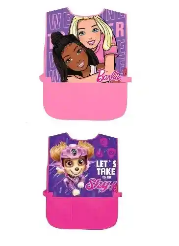 Delantal Infantil Escolar para niña marca Primavera con hermosos diseños de personajes impresos por transferencia Térmica., Talla Única, Delantal sin mangas, Cinta de velcro, 3 bolsillos. Diseño surtido. Se envía diseño según disponibilidad.