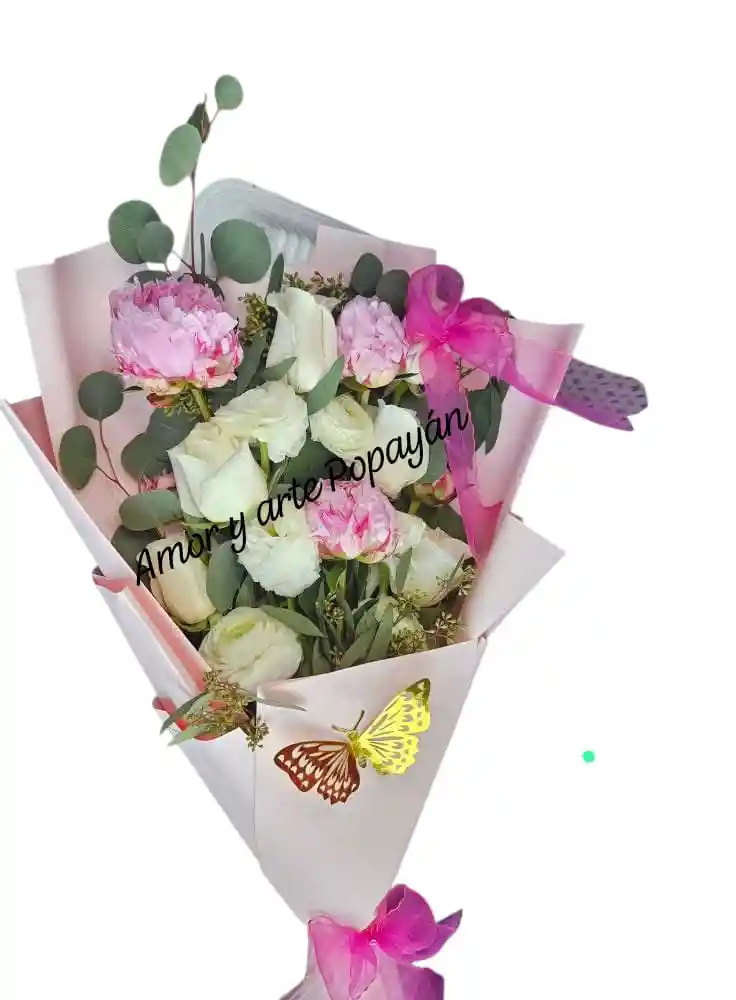 Ramo de mano de rosas Incluye: moño, tarjeta con mensaje personalizado, aroma, brillo.