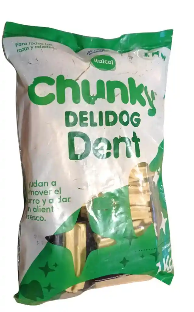 CHUNKY DELIDOG DENT son snacks para perros que cuidan su salud dental mientras disfrutan de un delicioso sabor. Su fórmula y textura ayudan a eliminar sarro y placa, y su sabor a menta deja un aliento fresco.