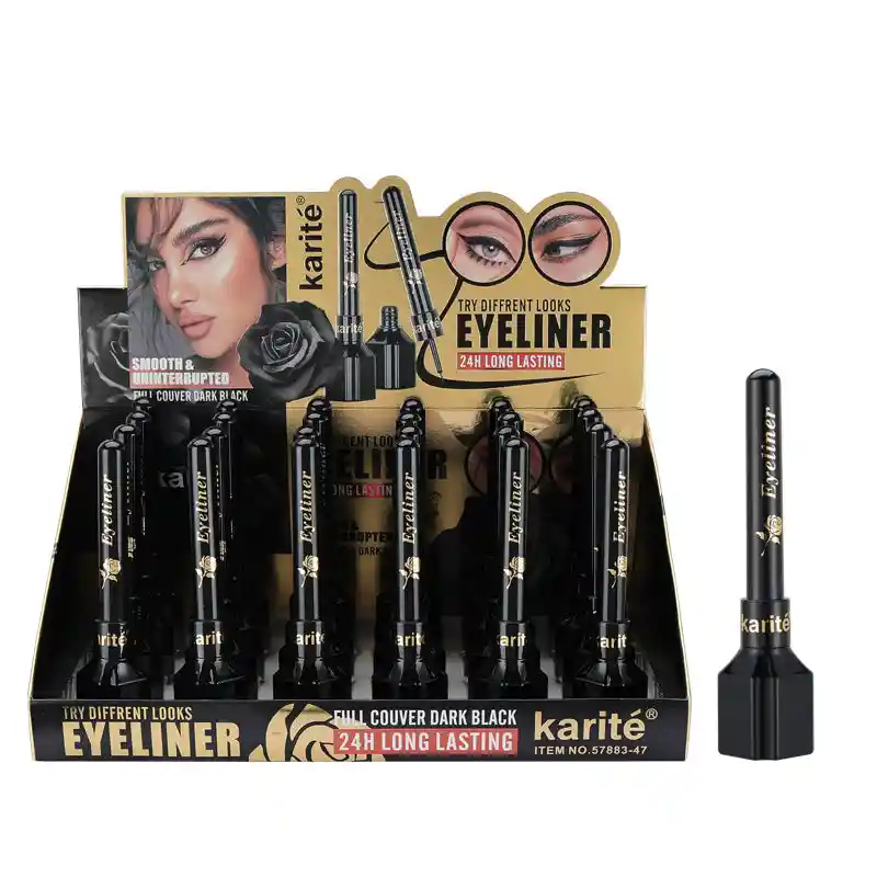 El delineador pincel negro es un producto de maquillaje esencial que proporciona un color intenso, larga duración y precisión en la aplicación para resaltar y definir los ojos.